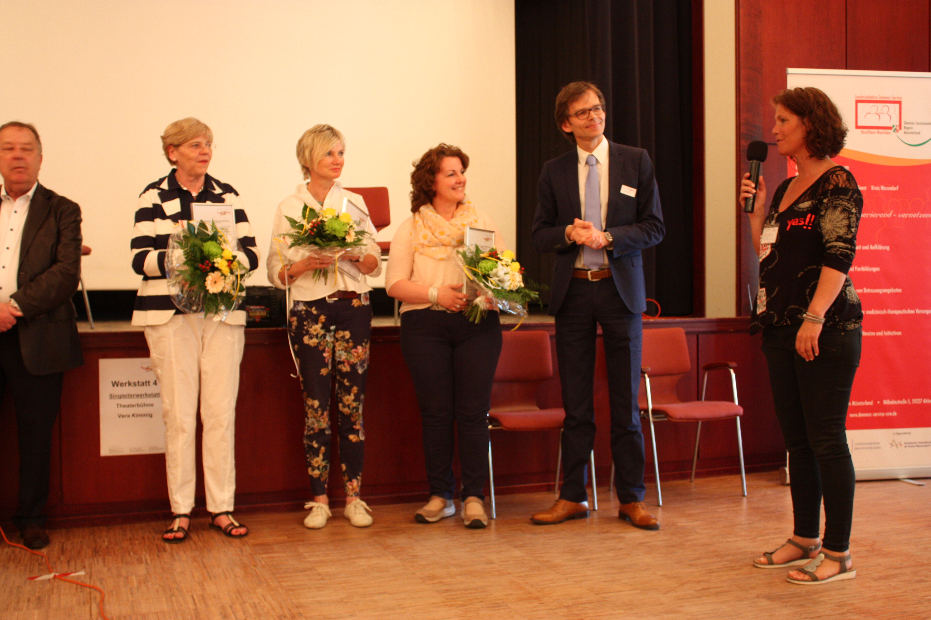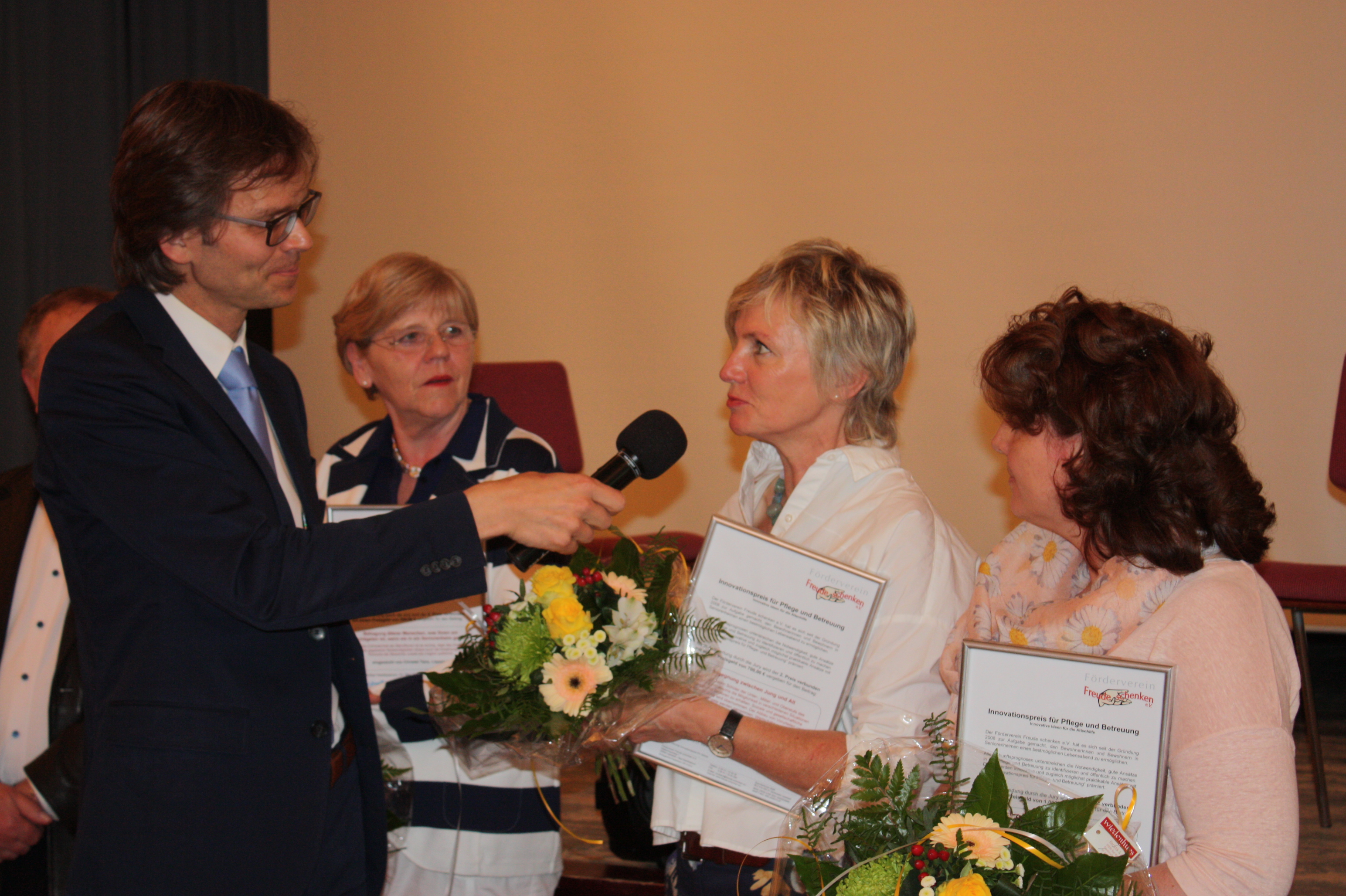 Startseite » Innovationspreis für Pflege und Betreuung Der Innovationspreis für Pflege und Betreuung wurde erstmalig im Rahmen der Fachtagung "Zukunfts-MUSIK-Demenz" am 31.05.2016 vergeben. Hoch erfreut nahmen die drei Erstplatzieren ihre Urkunden und das Preisgeld in Höhe von insgesamt 2000 € entgegen.